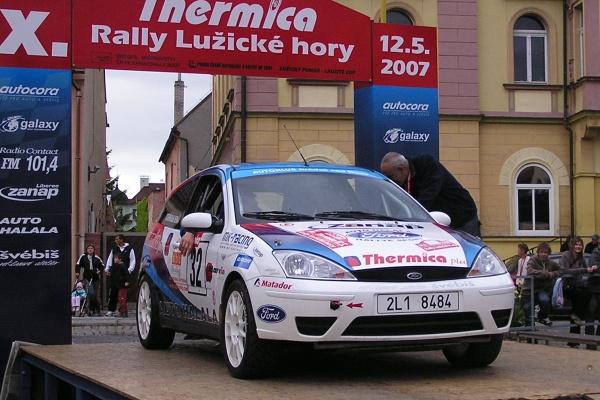 MČR-S 07 - Thermica Rally Lužické HoryHalala se Štěpánem s výsledkem nadmíru spokojeniS velice příjemnými pocity přijížděli na cílovou rampu 10. ročníku Thermica rally Lužické hory Jan Halala s Daliborem Štěpánem ( vůz Ford Focus 170 ST ). Přitom zejména jezdec měl před soutěží starostí více než dost. Je totiž členem organizačního výboru a tak do posledních chvil napomáhal zdárné přípravě. „Základem bylo, že nám prakticky bez závad fungovalo auto. Měli jsme sice jednu krizovku, když jsem dopoledne na mokré trati nedobrzdil, a po hodinách nám zhasl i motor, ale ztrátu asi dvaceti sekund jsme dohnali,“ říká jezdec. Odpoledne to vypadalo na bezproblémovou jízdu, ale přesto Vás postihla jedna nemilá příhoda. „Postupovali jsme ze zhruba pětadvacátého místa až na konečnou sedmnáctou příčku. Ovšem na šesté rychlostní zkoušce urazil kolo Stejskal a zůstal stát ve zúženém místě. Byli jsme nuceni zastavit a čekat, až pořadatelé vůz odstraní. Dostali jsme přidělený náhradní čas, který nás naštěstí nepoškodil.“ Takže s výsledkem jste spokojeni? „Určitě, k vítězství ve třídě jsme přidali i páté v absolutním pořadí Lužického poháru a sedmnácté celkově. A to v záplavě vozů Mitsubishi, Subaru a S 1600 považujeme za dobré. Děkujeme rovněž fanouškům za jejich bouřlivé povzbuzování na trati.“ Dva rallysprinty, dvě vítězství ve třídě A7, jaké další starty plánujete? „Pojedeme dál mistrovství republiky ve sprintrally, nejbližší soutěže nás čekají počátkem června v Tišnově a na konci června ve Slušovicích. Rádi bychom se objevili na domácí Bohemce. Ale rozhodující pro tento i další výjimečné starty budou finanční možnosti. Děkujeme tímto i našim sponzorům – firmám Thermica Plus, Marvin, ABC Tuning, Zanap, kteří se stejně jako náš doprovodný tým podíleli na našem úspěchu.“ Pavel Vydra